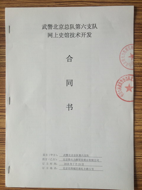 2016年7月25日,武警北京總隊(duì)第六支隊(duì)網(wǎng)上史館合同簽定 。