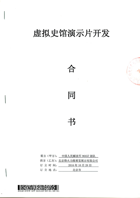 2016年01月19日,“中國人民解放軍96546部隊(duì)數(shù)字3D漫游網(wǎng)上軍史館”項(xiàng)目簽訂合同!