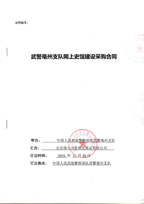 2016年11月30日,武警亳州支隊(duì)網(wǎng)上史館合同簽定。