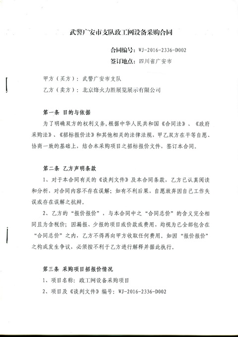 2016年12月8日,武警廣安支隊(duì)政工網(wǎng)項(xiàng)目合同簽定。